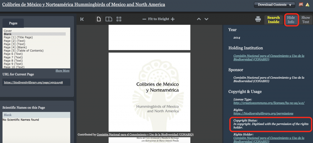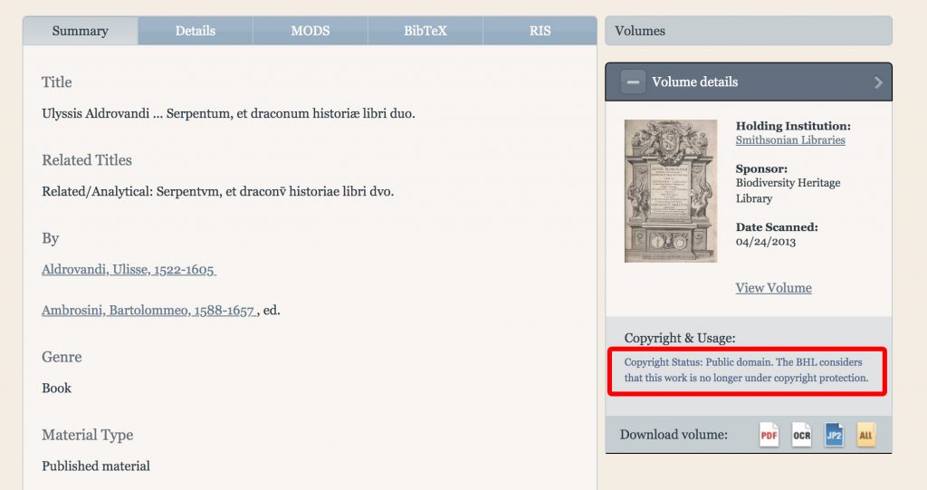 Once viewing the item in BHL, you can follow the instructions outlined above to determine the book’s copyright status.